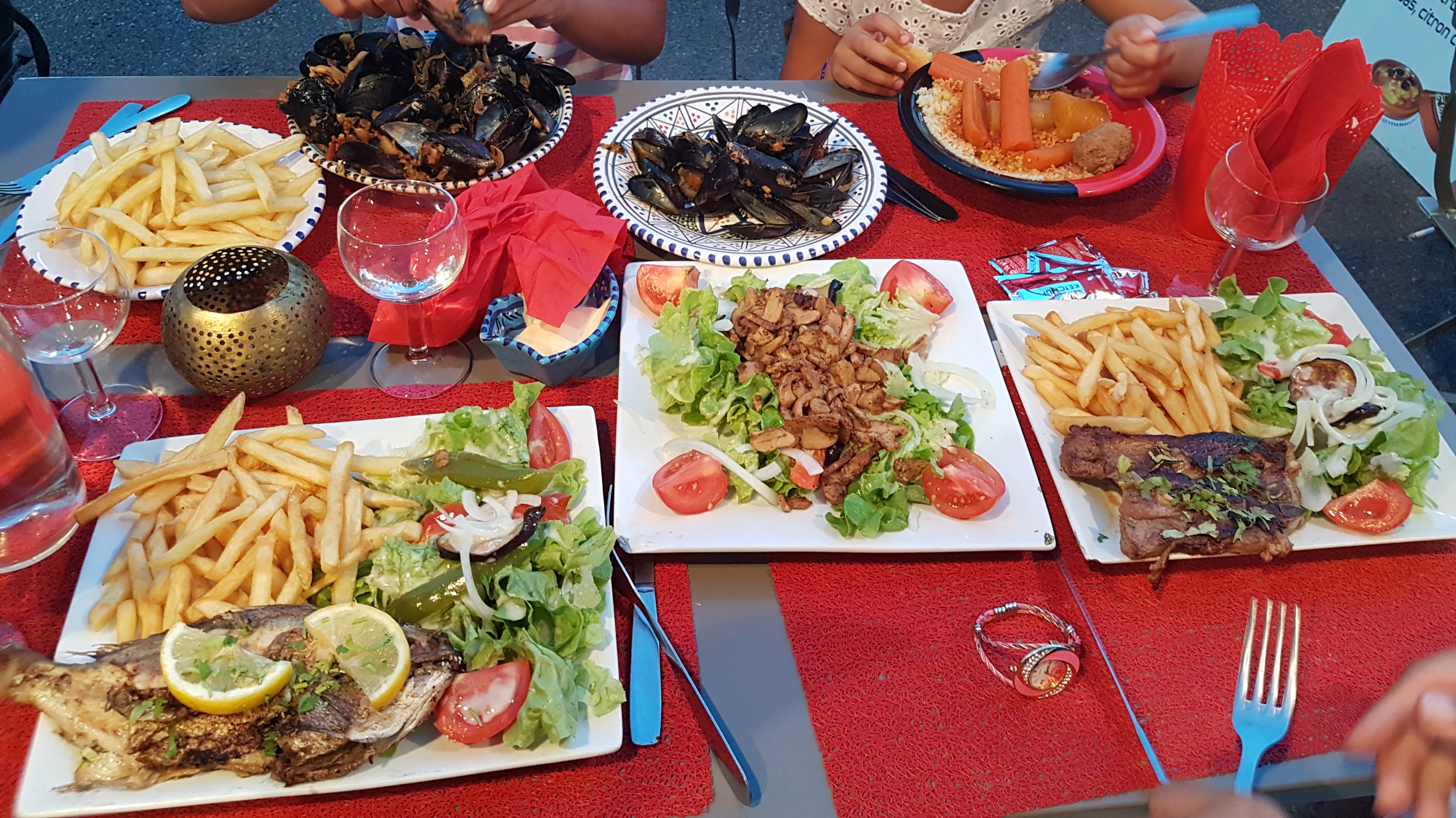 l'accueil a été sympa ,le service rapide du fait qu'il y ait mpins de vacanciers ,vu sur le port , un couscous riche en viande , pour un prix raisonnable .la soirée était agréable ,seul bémolrencontré les tables pour 2 sont un peu étroites elles sont vite chargées mais j'y retournerai avec plaisir.